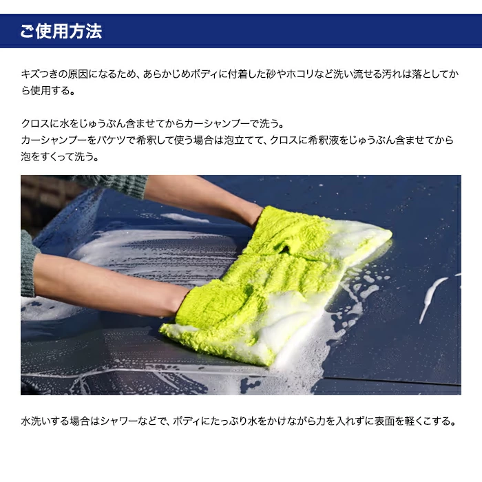 洗車専用に開発された柔らかく、厚みのある洗浄用クロスです。